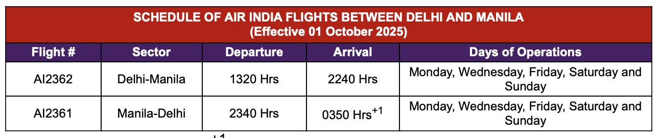 GURUGRAM, 3 October 2025: Air India inaugurated its first non-stop flight from Delhi to Manila, the capital of the Philippines, on Wednesday.