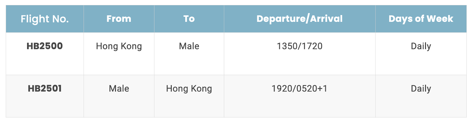 The airline will operate daily flights between Hong Kong and Velana International Airport in Male, Maldives, for the Lunar New Year holiday peak season. The airline will deploy its Boeing 737-800 aircraft on the route.