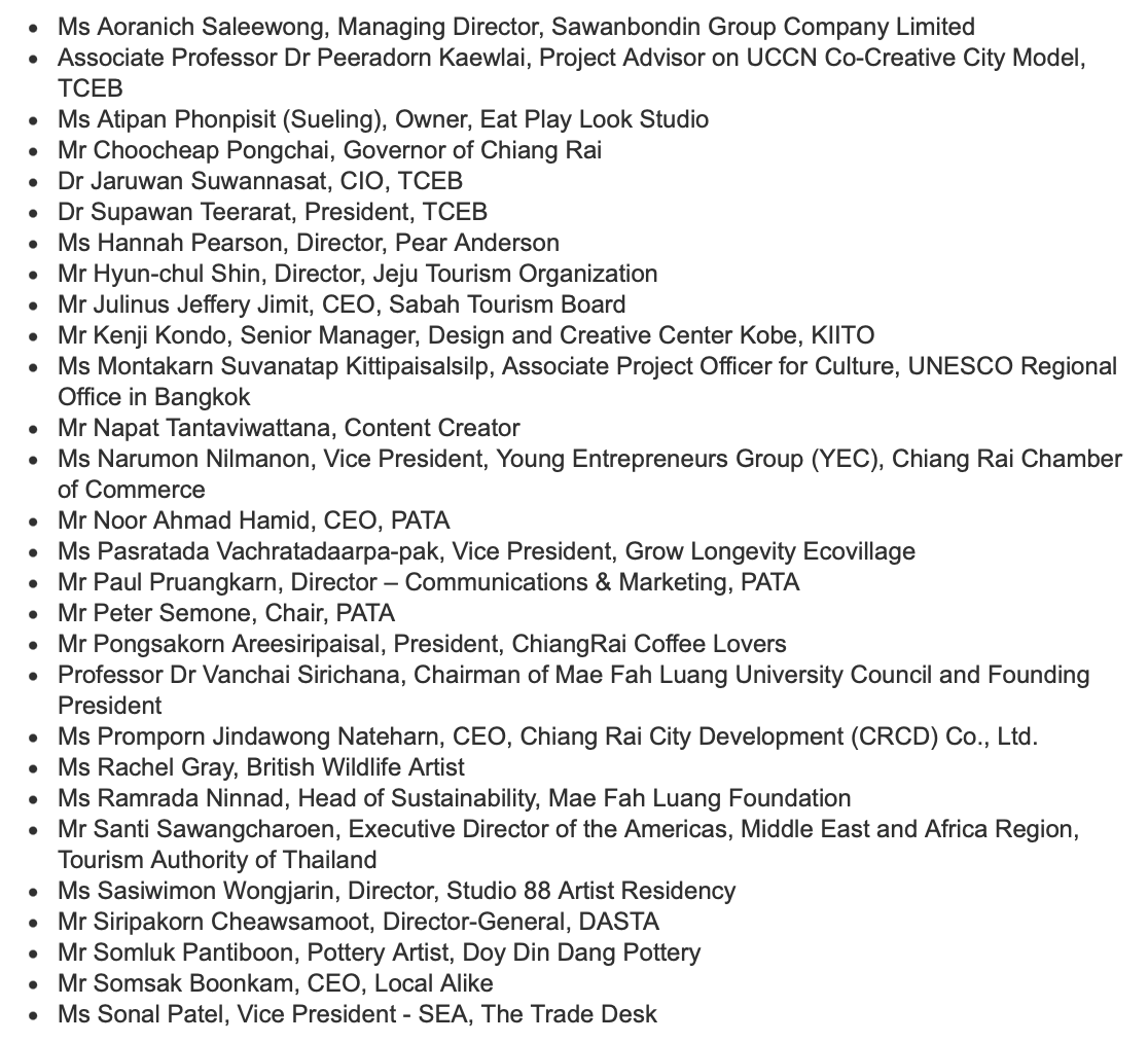 On the second day of the event, participants join one of three destination experience routes curated by the Designated Areas for Sustainable Tourism Administration (Public Organisation) (DASTA). The three technical tours are (1) Creative City of Design for Sustainability, (2) Cave, Coffee and Contemporary Culture, and (3) History, Locality and Artisans.