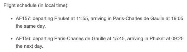 Air France now operates three flights every Tuesday, Friday and Sunday from Phuket, with return flights from Paris on Monday, Thursday and Saturday.