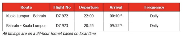 Flight Schedule: Kuala Lumpur (KUL) and Bahrain (BAH)