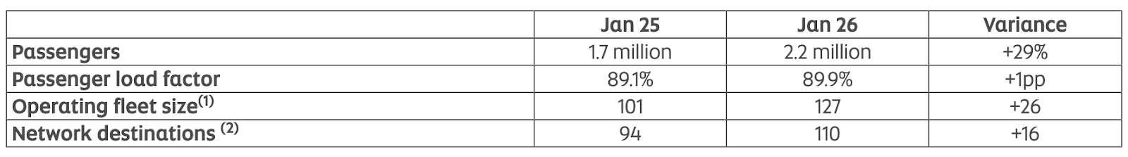 Passenger load factor reached 89.9% for the month, up from 89.1% a year earlier, reflecting sustained demand across the network and continued efficiency in capacity management.
