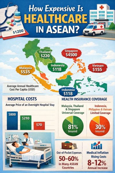 This comparison focuses on nine ASEAN countries where private healthcare pricing is most relevant to international travellers.