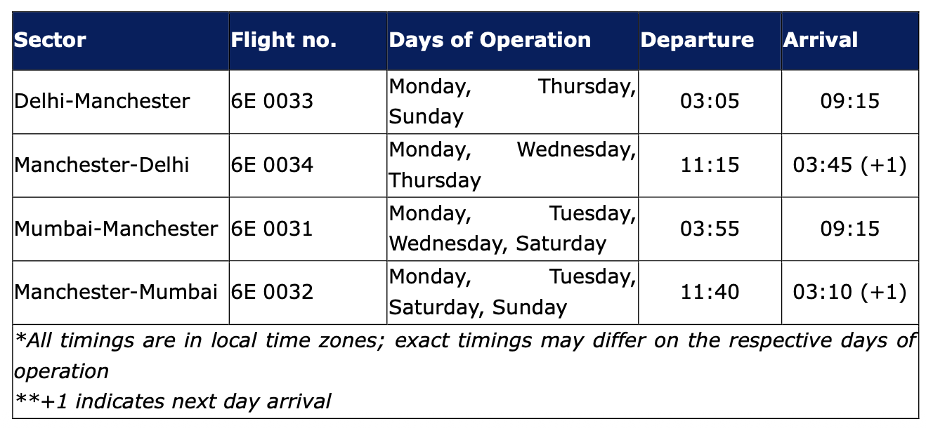 • Since 7 February 2026, IndiGo has reduced its Delhi – Manchester services from five flights per week to four flights per week, and will be further reduced to three flights per week starting 19 February 2026.
