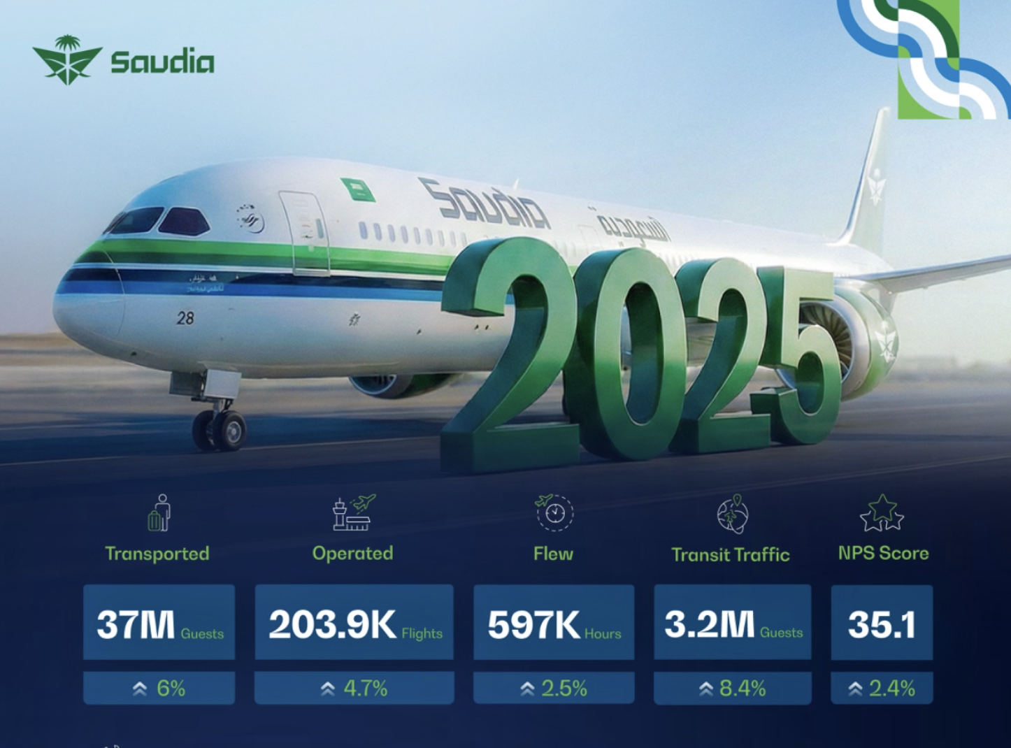 JEDDAH, 4 February 2026: Saudia, the national flag carrier of Saudi Arabia, recorded significant growth in its operational performance throughout 2025, while continuing to leverage its international flight network to enhance transit traffic yields.