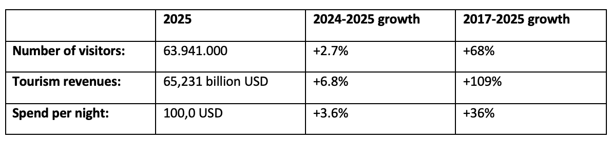 Some highlights from Türkiye’s 2025 tourism results: