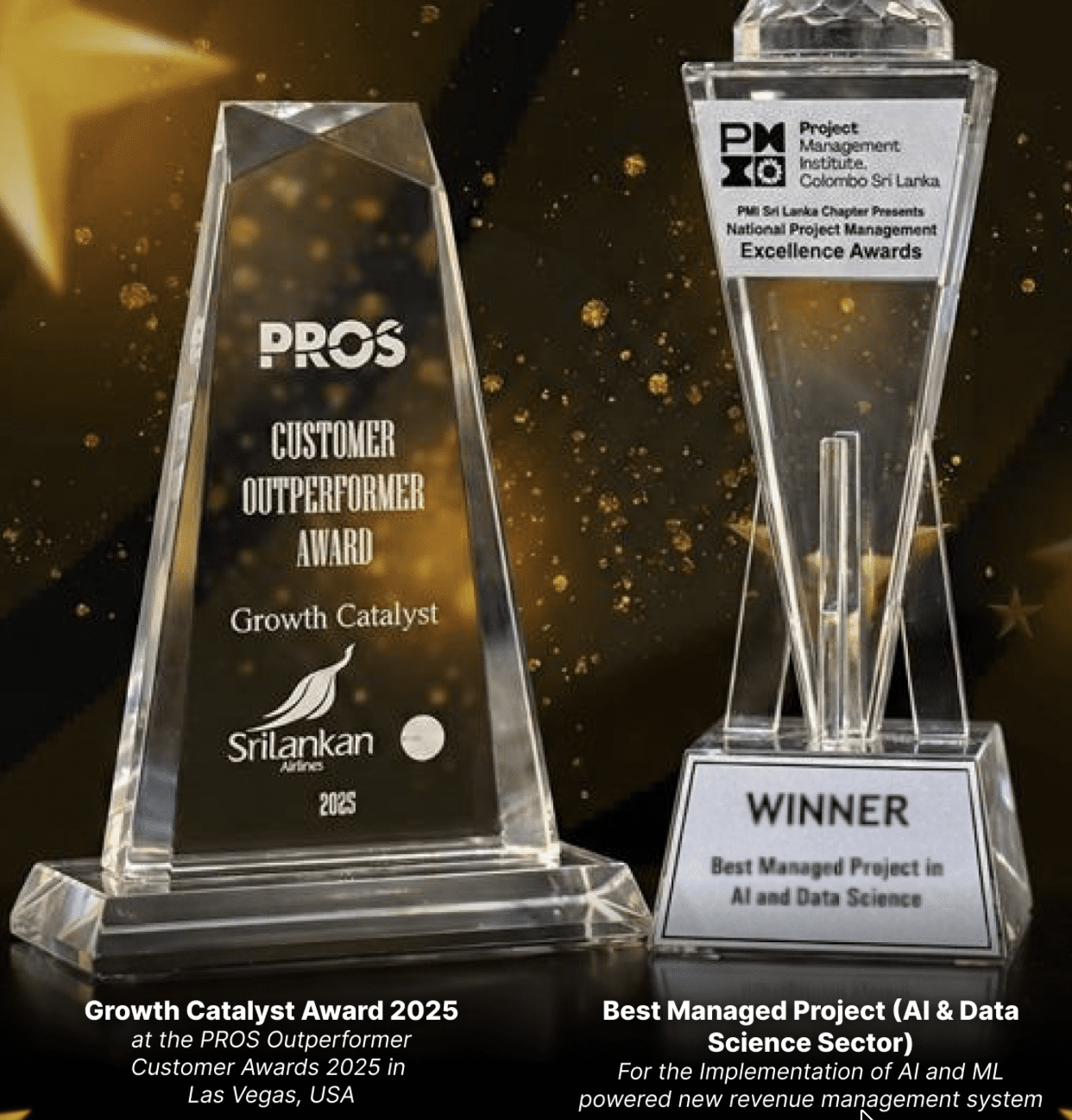This initiative has not only enhanced SriLankan Airlines’ agility, scalability, and competitiveness in a dynamic global aviation market but also strengthened collaboration among the pricing, demand, and flight analyst teams, earning two awards in the process. It was recognised with the Growth Catalyst Award at the Outperformer Customer Awards 2025 in Las Vegas by PROS, as well as the Silver Award in the AI and Data Science category at the National Project Management Excellence Awards 2025 in Colombo by the Project Management Institute Sri Lanka Chapter.