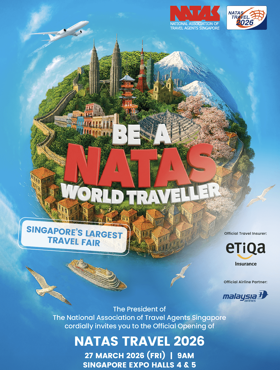 Etiqa Insurance Singapore returns as the Official Travel Insurer for the NATAS Travel Fair 2026, reaffirming its commitment to helping travellers explore the world with confidence. Its comprehensive travel insurance plans cover medical expenses, personal accidents, flight delays and trip cancellations, providing reliable protection throughout every journey. Travellers attending the fair will have access to exclusive promotional offers from Etiqa. Etiqa Insurance Singapore will be located at Booth 4H49 (Hall 4).