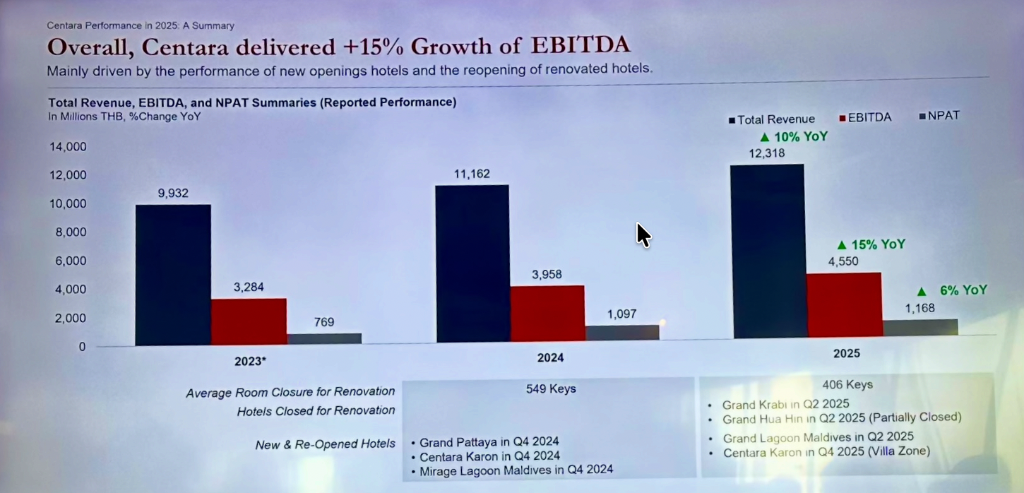 Building on this momentum, Centara has set a revenue growth target of 14-15% for 2026. Growth will be driven by international expansion, portfolio upgrades, brand repositioning and continued recovery in global tourism, particularly in Thailand and North Asia.