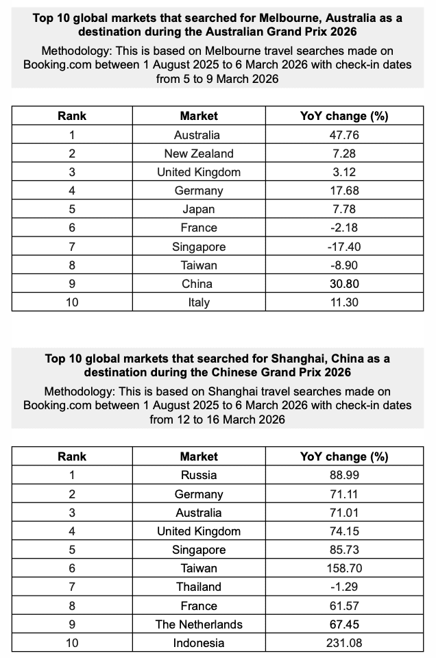 SINGAPORE, 26 March 2026: New Booking.com search data* reveals that major Formula 1 races are increasingly shaping travel plans across the region.