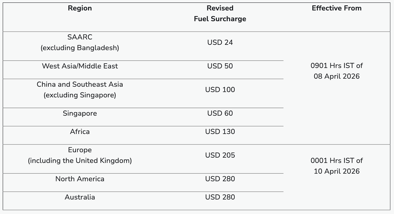 DELHI, 10 April 2026: Air India group has announced further revisions to its fuel surcharge structure across domestic and international routes, effective on 8 April.