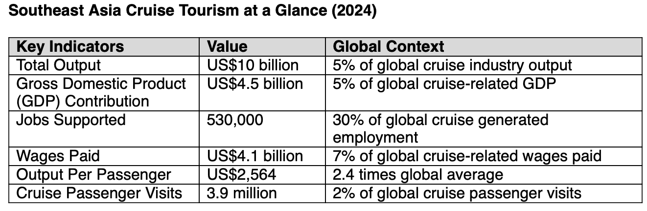 Southeast Asia generates strong economic returns from cruise tourism.