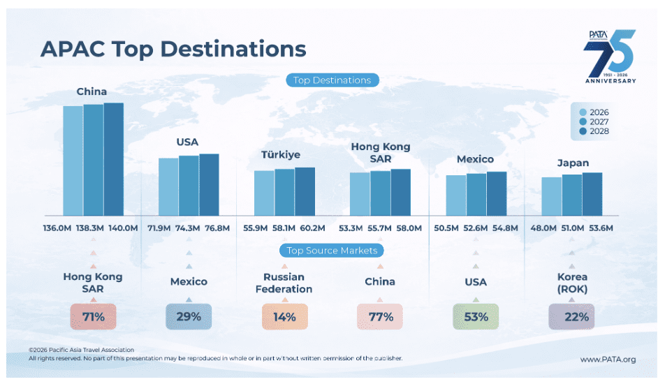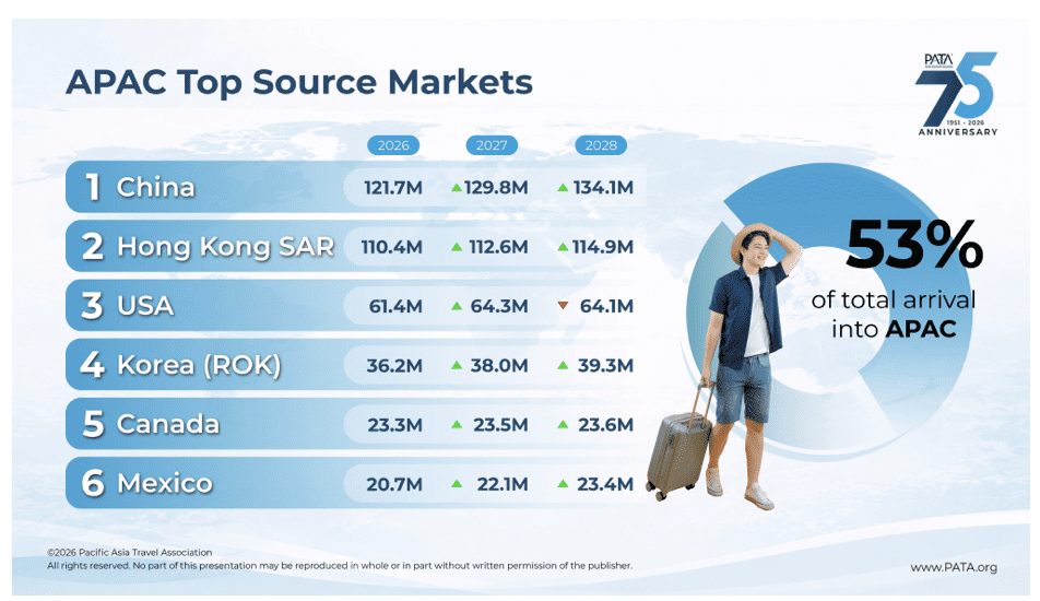 “International tourism is entering a more complex phase where growth continues, but under increasing pressure,” said PATA CEO Noor Ahmad Hamid. “At PATA, we recognise both sides of the equation — the positive momentum driven by strong regional demand, and the downside risks arising from geopolitical tensions, economic volatility, and climate-related disruptions.