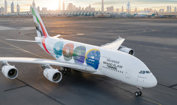 The livery will remain in Emirates’ fleet for the coming years, with the first flight sporting this unique design having landed in Melbourne, Australia, to mark the start of this year’s first Grand Slam tournament.