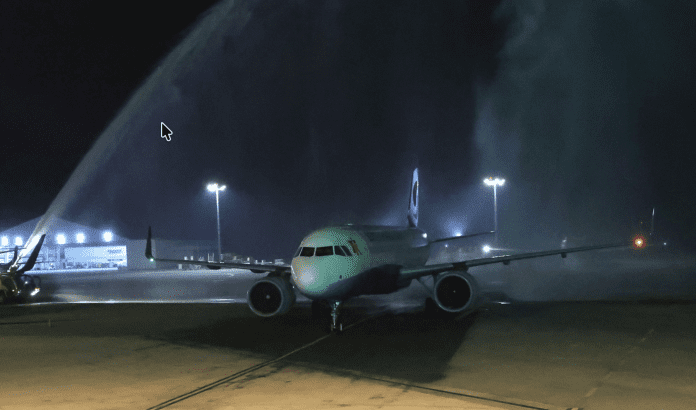 Malaysia Airports Holdings (MAHB) welcomed the 154 passengers on board the inaugural flight with a water cannon salute.